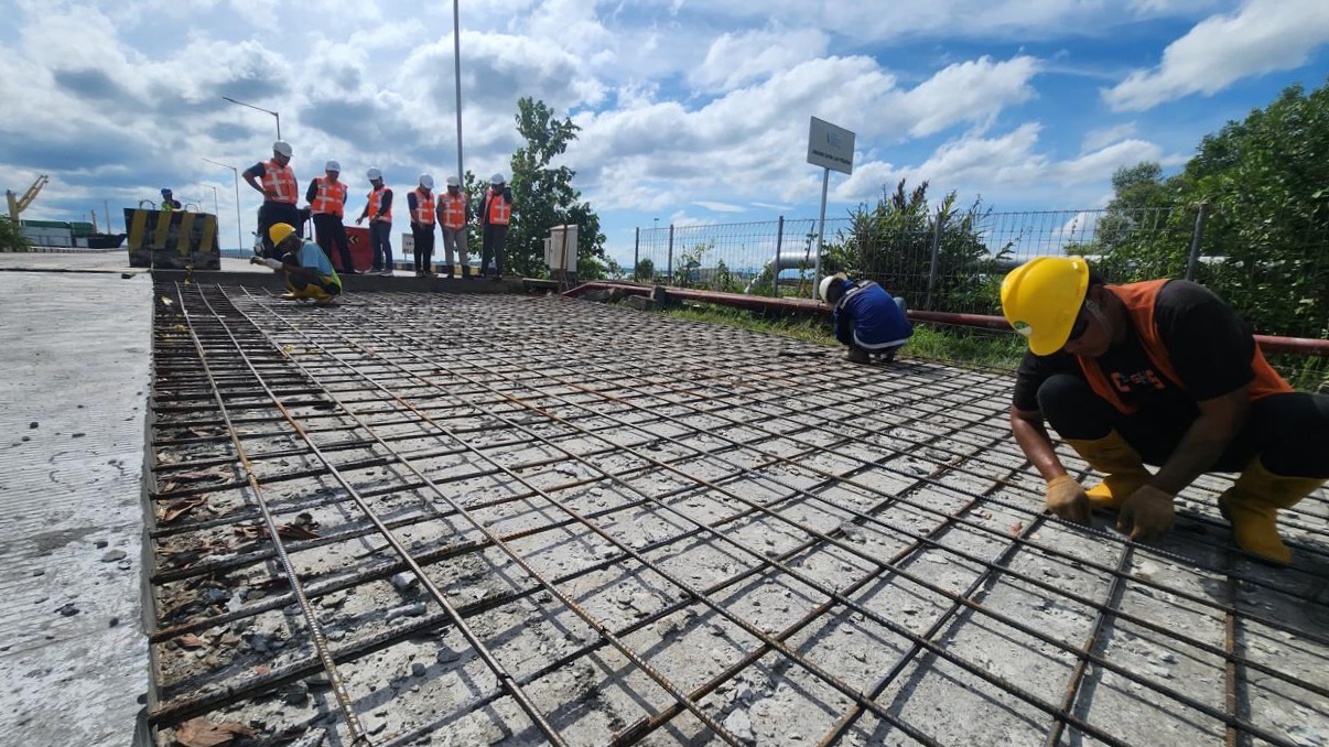 “Pekerjaan extension sitting plate kami lakukan untuk menambah kapasitas lapangan penumpukan. Dengan penambahan struktur beton ini, area penumpukan menjadi lebih efisien dan mampu menampung lebih banyak kontainer,” ujar Enriany, Rabu (5/11/2025).